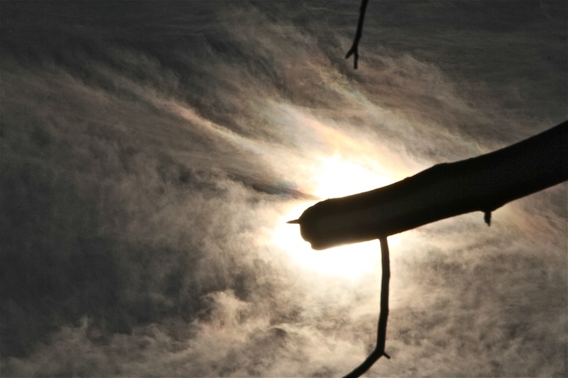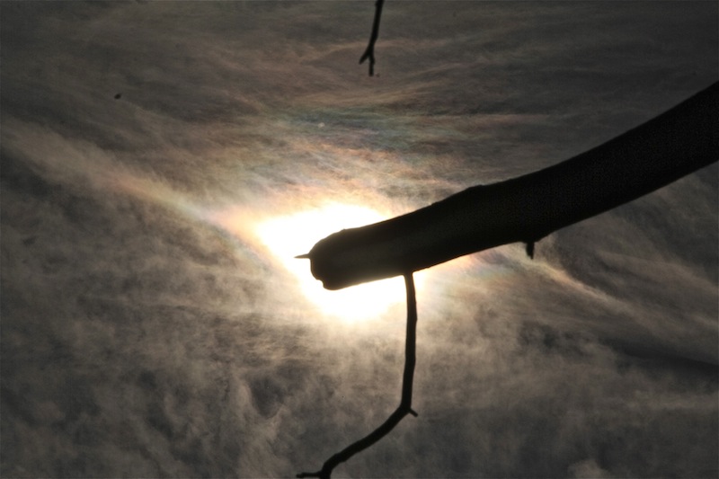 - eine durchbrochene, schwache Korona um die Sonne gegen 12h Mittag