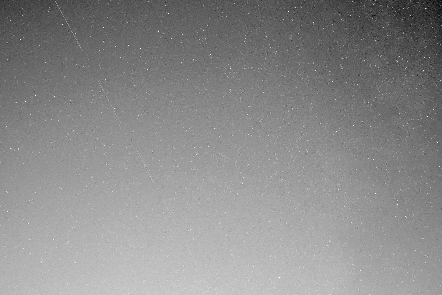 Wenn ich alle Bilder mit einem Maximum-Filter addiere, sieht man die "Autobahn" der Satelliten überdeutlich; bei einer Kombination mit Mittelwert sind sie hingegen nicht mehr zu erkennen.