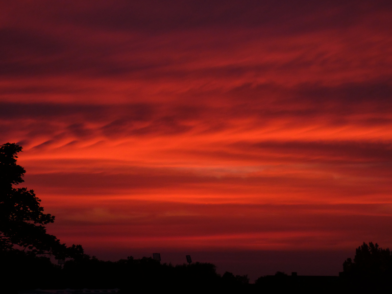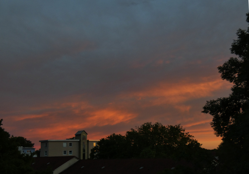 Heute (14.06.) gab es in Bochum ein großes Abendrot an Altostratus und Cirrostratus zu bewundern. Es begann, als sich gegen 21.35 Uhr der Südosthimmel seltsam verfärbte: