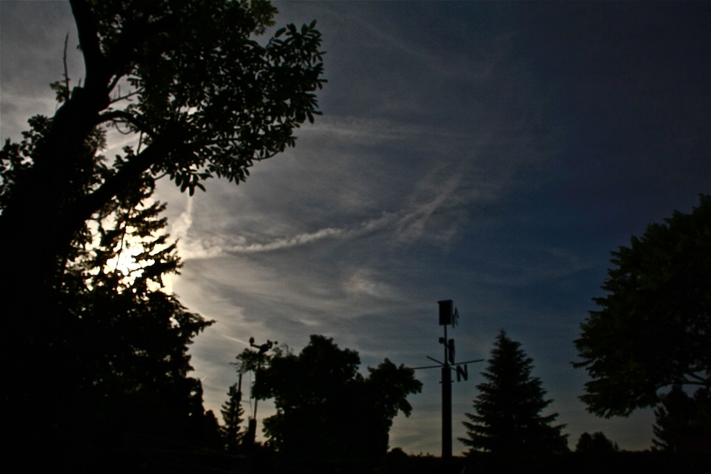 gestern Nachmittag zeigten sich klassische Jet-Stream-Cirren von Nord nach Süd lang gezogen. Leider beruhigten sich die oberen Luftschichten nicht, so dass sich Eiskristalle horizontal gestalten konnten, hielt fleissig Ausschau nach einem Parhelion, aber es tat sich den ganzen Tag über nichts, leider.