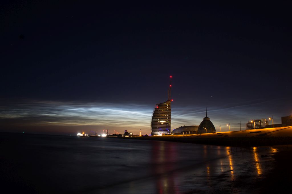 Ich habe die NLCs durch Zufall vom Küchenfenster von zuhause aus gegen halb 12 gesehen, daher beschloss ich nochmal ein paar Kilometer zu fahren wo ich deutlich bessere Sicht hatte und ich entschied mich für das Lotsenhaus am Weserbad wo ich ein schöne Sicht auf Wasser und Skyline hatte.