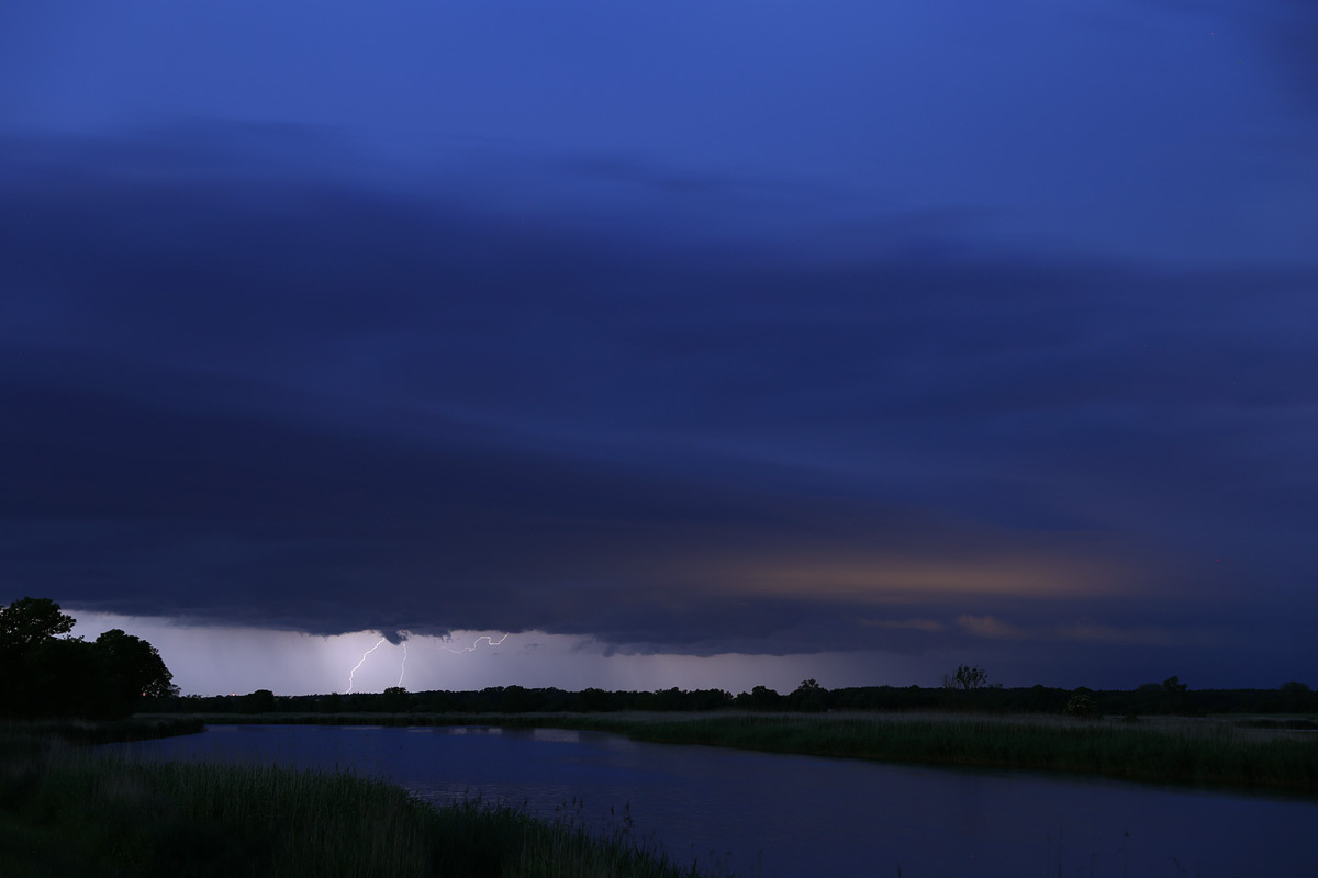 Kaum waren die NLC zu sehen, waren sie auch schon wieder hinter dem aufziehenden Schundwetter verschwunden. Das Bild zeigt nur Reste der NLC, auf dem Weg zum Ryck konnte ich noch deutlich höher stehende weitere Elemente des Displays sehen, aber als ich wenige Minuten später am Fluß war, hatten die Gewitterwolken diese schon geschluckt. Die Helligkeit würde ich mal grob mit 3 angeben, aber zu viel "Hans guck in die Luft" konnte ich dann auch wieder nicht machen, so das diese Angabe mit Vorsicht zu genießen ist. Ich blieb dann noch ein wenig und konnte unter anderem diesen Schnappschuss machen, bevor die Unwetterfront auf dem Regenradar im Handy mir dann doch zu nahe kam und ich die Flucht ergriff.