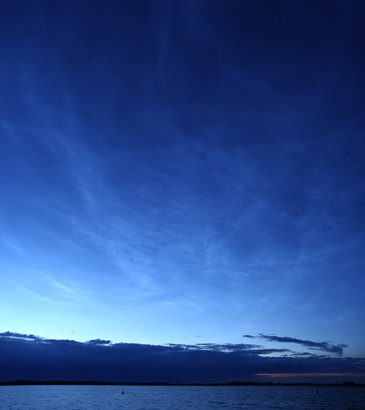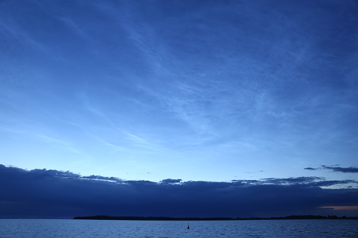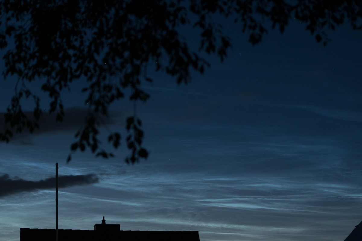 Genauso wie letzte Nacht braute sich auch heute Abend wieder ein Gewitter zusammen und zog Richtung Greifswald. Da es im Netz erste Meldungen von NLC gab und das Gewitter dem Regenradar zufolge zum Großteil vorbeiziehen würde, wagte ich mich trotz meiner extremen Wetterempfindlichkeit aus dem Haus, um noch schnell ein paar Fotos von den NLC zu machen und dann hoffentlich trocken wieder heim zu kehren.
