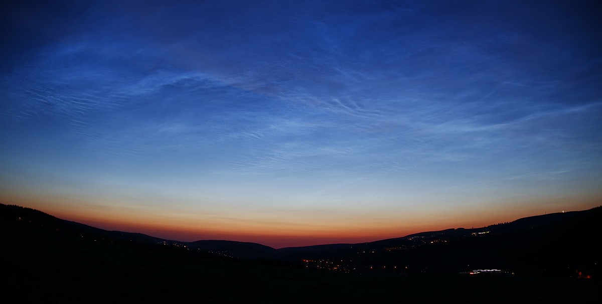 Hier in Erlangen deutliches Display. Höhe so zwischen 30 - 40 am Anfang (22:25). Helligkeit sehr hoch, würde 5 sagen. Ich dachte zuerst das sind gar keine NLCs weil es deutlich sichtbar war und ich bis jetzt sie immer nur mit der Kamera nachweisen konnte. Aber nach einer Minute hab ich dann realisiert das es nur NLCs sein können weil es sonst nicht so hell sein würde über einer Stunde nach Sonnenuntergang. Es überstrahlte deutlich die Bergkirchweih welche heute zu Ende geht.