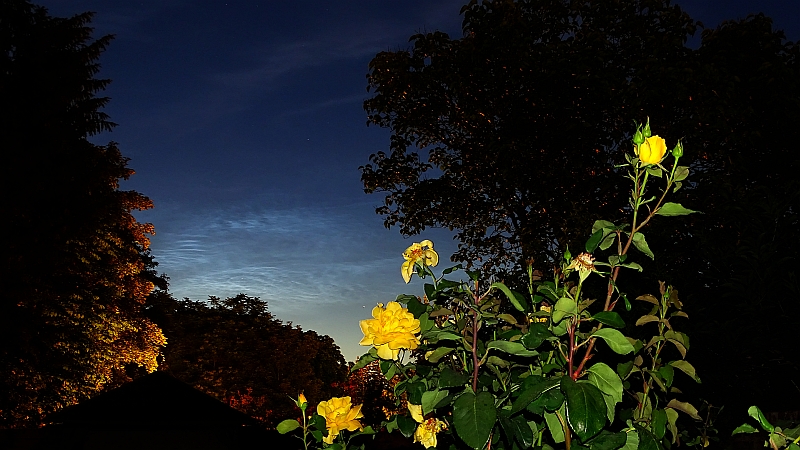 Hier noch ein Bild des südlichsten NLC-Feldes, welches ich je zu Gesicht bekommen habe. Die tiefsten Bereiche stehen ca 45° - 50° über dem Horizont, im Süden wohlgemerkt.