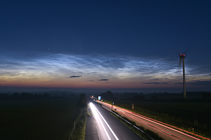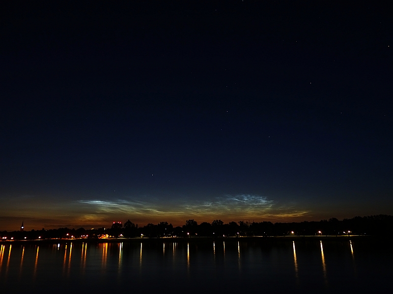 haben sich dann weitere, deutlich hellere und noch sehr horizontnahe Leuchtende Nachtwolken dazu gesellt. Diese sind im Laufe der Nacht dann immer größer geworden.
