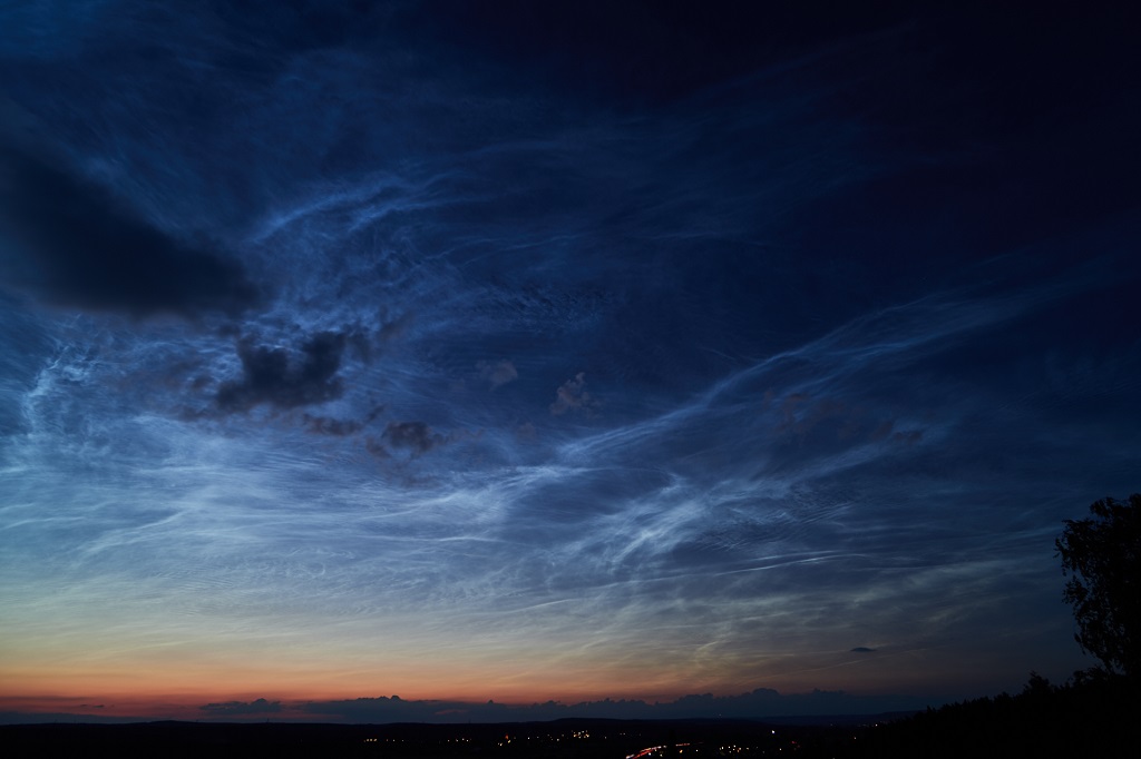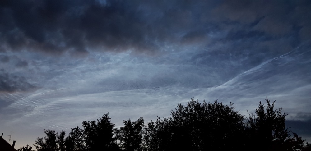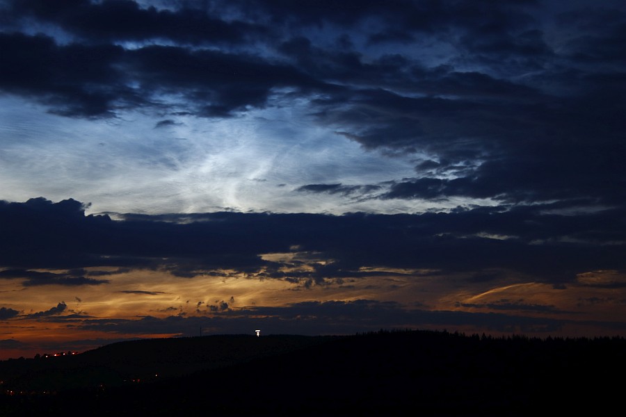 Sehr helle NLC über Möhrendorf/NordBayern. Kurz nach Sonnenuntergang also gegen 22:00MESZ bereits schwach sichtbar bis zum Zenit.