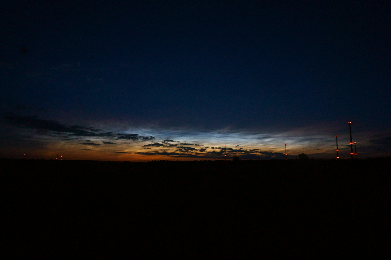 Nach dem Hammer von gestern Abend habe ich mich einen Ort begeben, den ich schon letztes Jahr ausbaldowert hatte. Die NLCs waren jedoch nicht zu vergleichen mit gestern Abend. Zwischen den Fotos hatte ich ständig meinen Ärmel auf der Linse (bzw. UV-Schutzfilter), damit die etwas warm wird und nicht sofort zutaut. Da muss ich mir irgendwas überlegen, so geht das jedenfalls nicht.