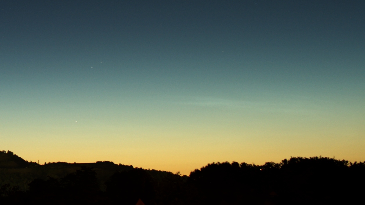 Deine Bilder Christoph, dieser horizontal ausgerichtete NLC-"Feinripp" sind auch übereinstimmend mit dem, was ich ungefähr zur selben Zeit gerade so knapp an der Grenze der Wahrnehmbarkeit mit bloßen Augen erkennen konnte, und im Chat geteilt hatte.