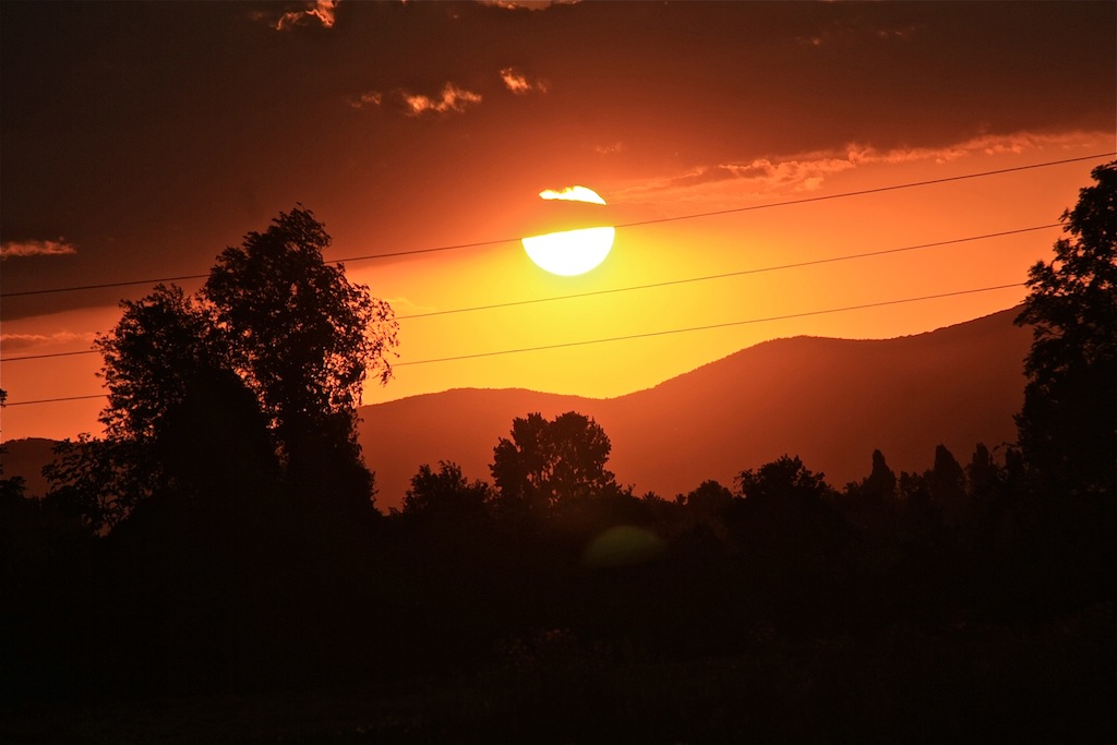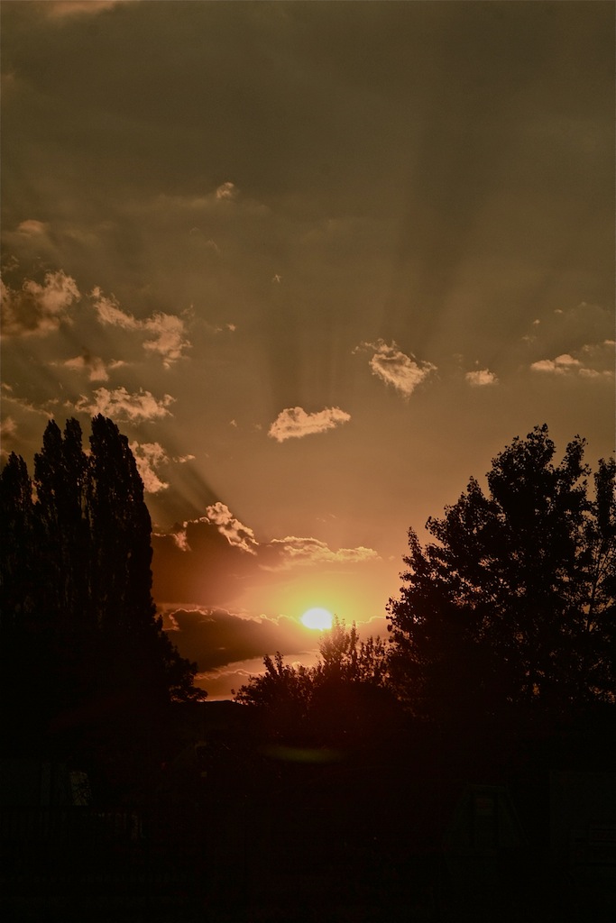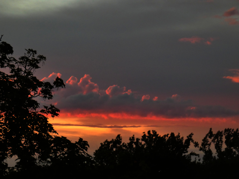 Nach dem KF Durchgang aus NW, der uns heute Morgen ein erfrischendes Minimum von 15 Grad nach sonst über 20 Grad tropischen Nächten bescherte, gab es gestern ein beeindruckendes Rot bei Sonnenuntergang und intensive Schattenstrahlen.