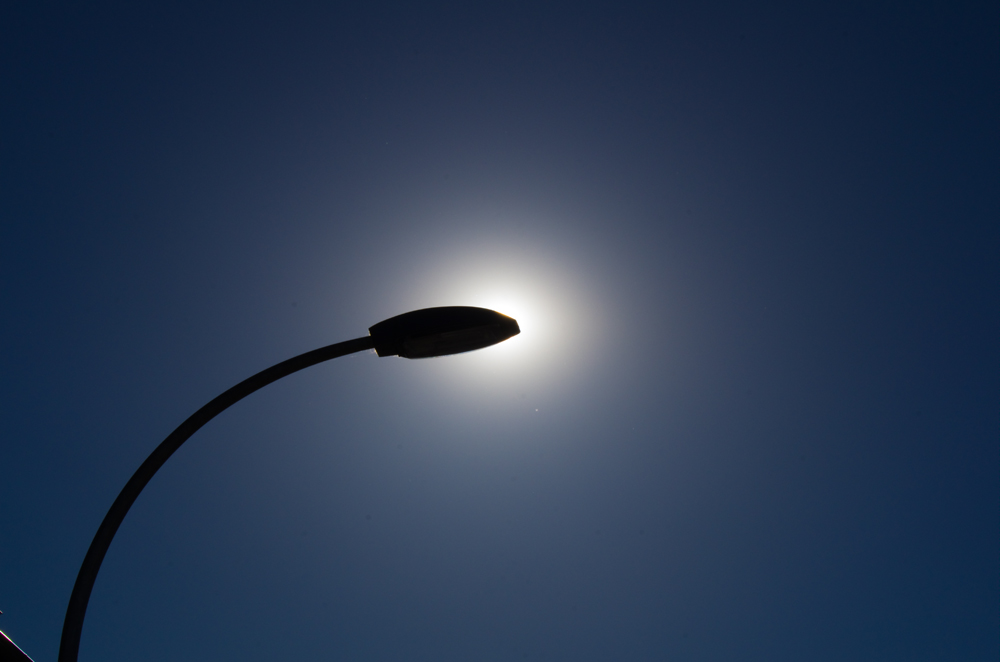 ich habe die letzten Tage um die Sonne immer wieder diffuse Aureolen gesehen, so wie diese hier vom 27.06., 18:12 MESZ:
