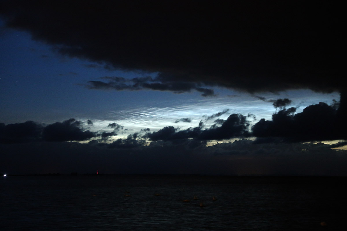 Tatsächlich spuckten die Wolken die NLC aber noch mal für einen kurzen Moment wieder aus, so das mir weitere Fotos gelangen. In Bild 4 kann man erkennen, das es sich eigentlich um ein schönes Display mittlerer Größe gehandelt hat, das ohne Wolken wohl gerade noch in eine 24 mm Aufnahme gepasst hätte. Die helligkeit war ordentlich, ich würde sie etwa auf drei schätzen, wobei das bei so vielen Wolken immer schwierig ist.