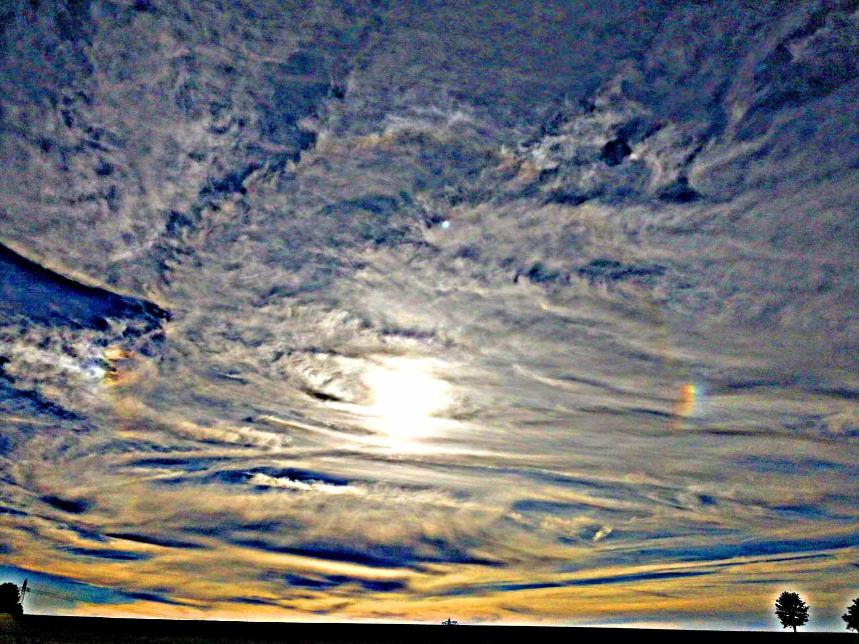 Gestern gegen 19.30 Uhr während meiner Radtour wunderschöne Haloerscheinungen beobachtet. Leider nur Smartphone dabei. Ort: Wolperndorf bei Penig, unweit der thüringisch-sächsischen Landesgrenze.