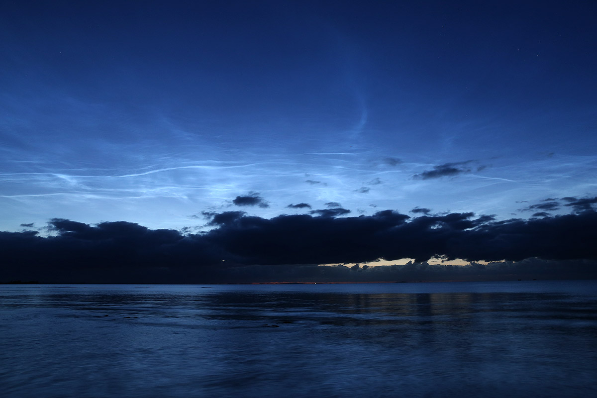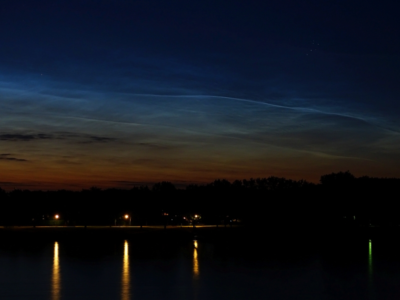 Leuchtende Nachtwolken über dem Scharmützelsee (Brandenburg) am Abend des 2. Juli 2019, 23:53 Uhr MESZ in Diensdorf aufgenommen