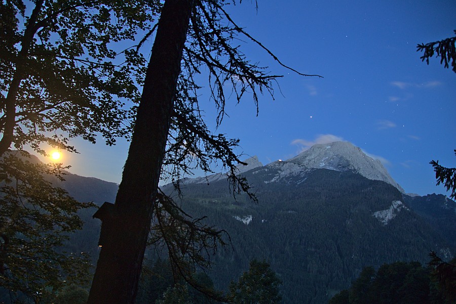 Auch wenn es schon ein paar Tage her ist, möchte ich den Mondaufgang und die Mofi am Watzmann nachreichen.
