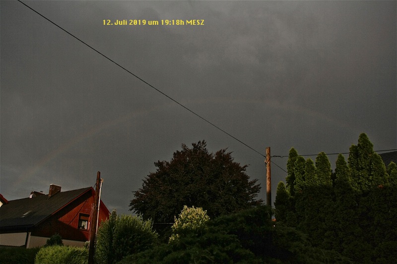 Gestern Abend und heute (12. und 13. Juli gegen 19-20h MESZ) zeigten sich Abends im Osten Regenbögen, der gestrige nur leicht angedeutet, der heutige doch recht intensiv und sogar doppelt.