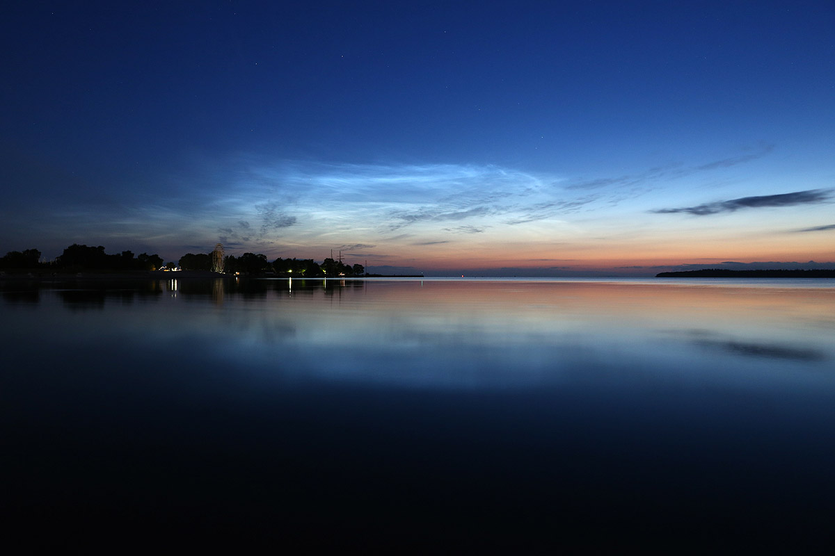 Die NLC waren mit bloßem Auge zu diesem Zeitpunkt noch nicht zu erkennen. Meine Position befand sich am unteren südöstlichen Ende des Strandbads in Greifswald Wiek, mit Blick nach Norden zur Hafenausfahrt Wieck und zur Nordmole mit dem typischen grünen Signal.