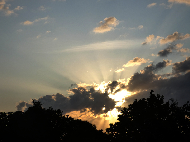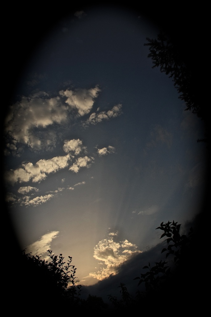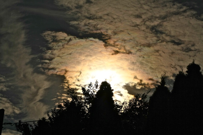 Um Mitternacht tobte sich die Front dann hier aus. Zwei Tage zuvor zeigte sich um den zunehmenden Mond eine schöne Korona und zwischen den Fronten intensive Schattenstrahlen.