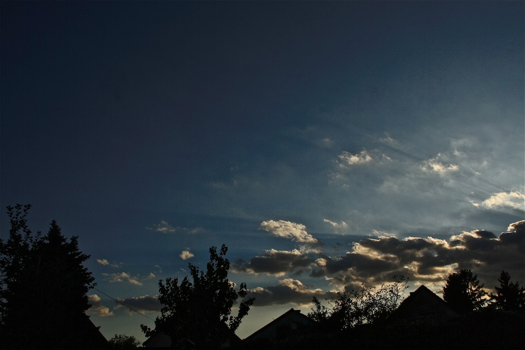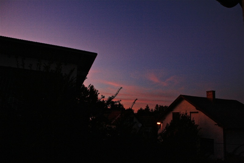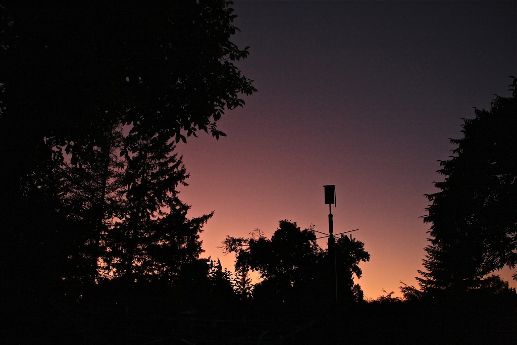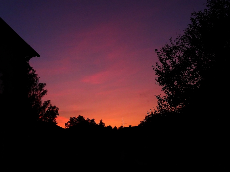 Gestern Abend zeigte sich ein auffälliges Purpurlicht. Diese angenehmen Sonnentage im zentraleuropäischen Hoch sind wahre Wohlfühlwettersituationen, trockene Luft, keine Schwüle und bleierne Schwere, Zimmertemperaturen, kühle Nächte zum Durchschlafen,laue Lüftchen und sternenklare Nachthimmel.