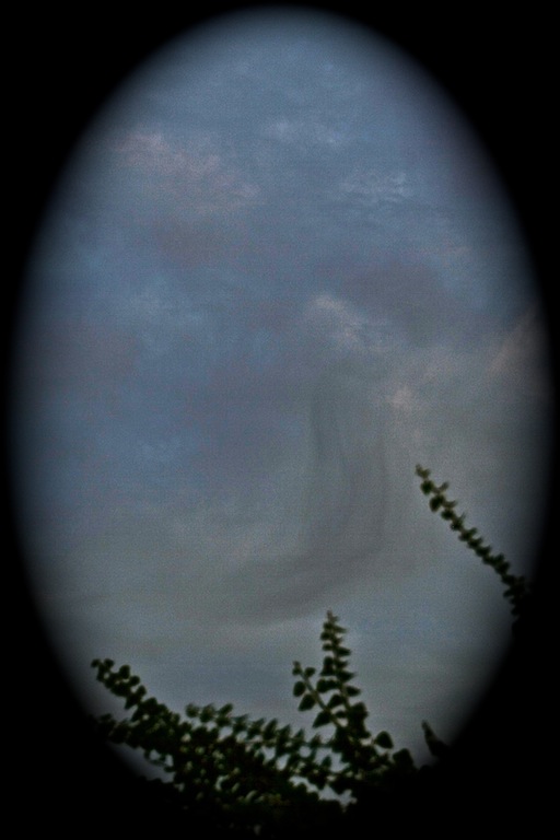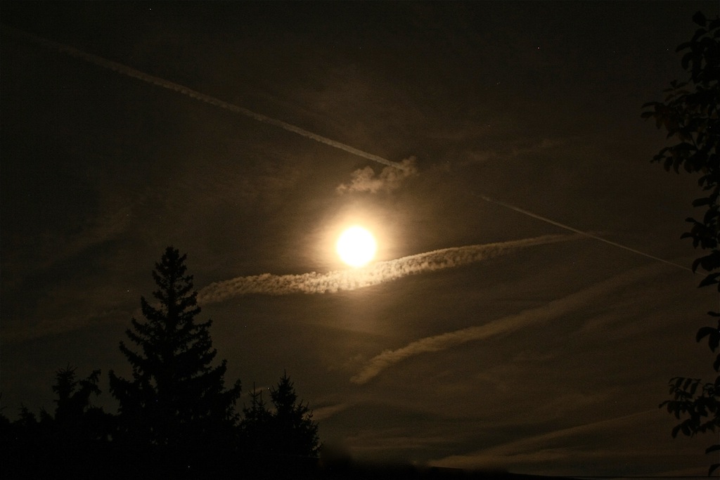 die Kondensstreifen zogen heute den ganzen Himmel zu - dabei kamen manch kuriose Gestalten heraus und der Mond zeigt sich durch eine Korona.