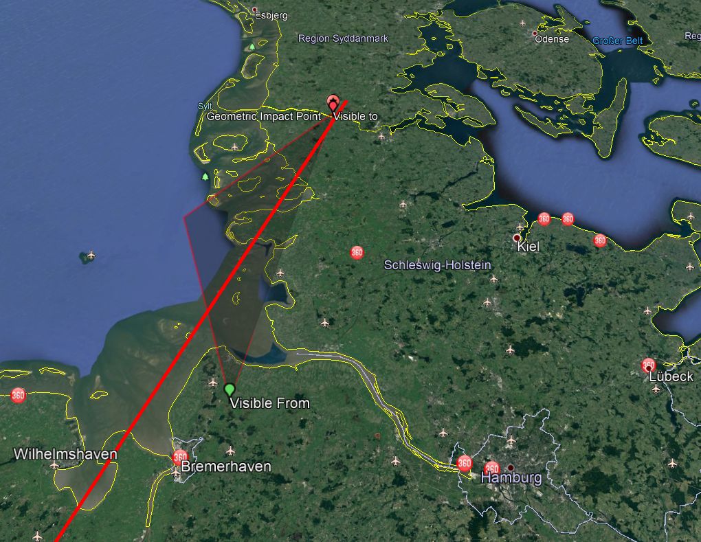 Je mehr Daten gesammelt werden, desto genauer wird die Bahn. Nach aktuellem Erkenntnisstand könnten sogar Meteorite unweit der deutsch-dänischen Grenze auf Land niedergegangen sein).
