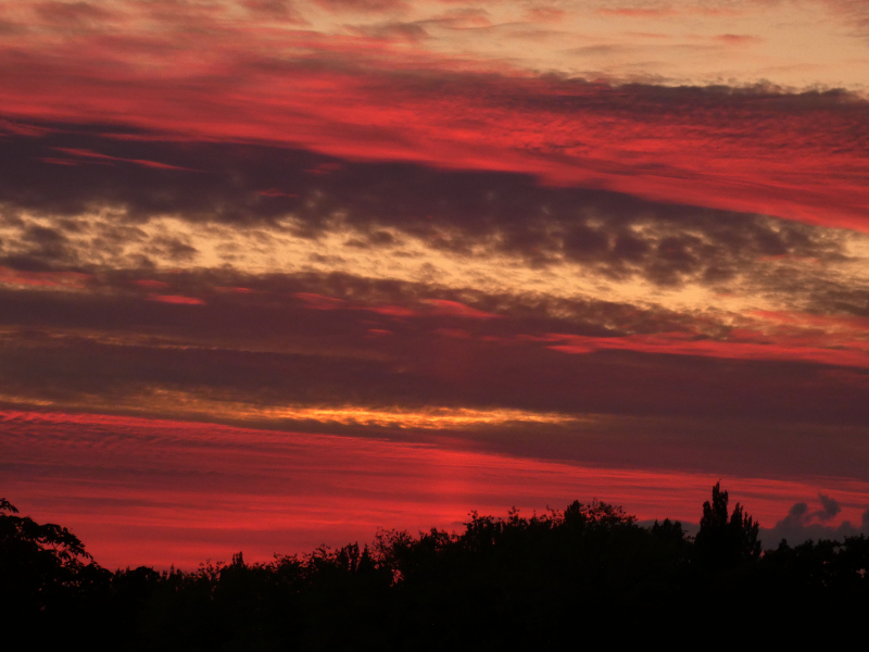 Hier in Bochum gab es zunächst rote Fallstreifen im Nordosten: und dann, kurz nach 19 Uhr Sommerzeit, ein schönes Abendrot im Westen: Mit roter Lichtsäule unterm Altocumulus, da fielen also schon Eiskristalle aus: Grüße