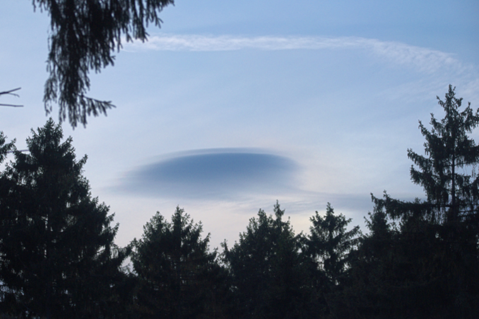 Das ist eine Altocumulus lenticularis (Ac len), häufig auch "UFO-Wolke" genannt.Sacht mal, liebe Leute, ich hätte gerne gewußt was DAS HIER zu sein scheint