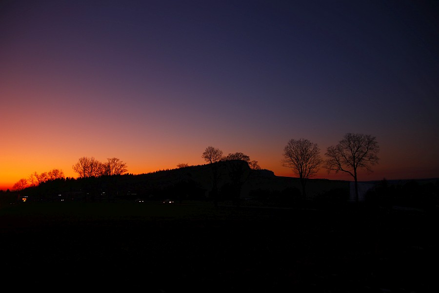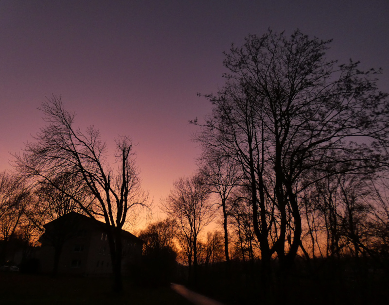 Kurz vor 17 Uhr wurde das Purpurlicht zu einem dunkelroten Glühen am Horizont
