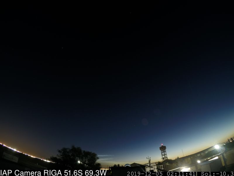 EDIT(H sagt am 05.01.2020): Da ich jetzt noch mehr Frames aus dem genannten Zeitraum sehen konnte, kann ich den Verdacht sicher bestätigen. Letztlich handelte es sich um einige weitestgehend positionsstabile NLCs, die hinter abziehendem troposphärischen Gewölk bei zunehmender Morgendämmerung doch noch ganz gut in Erscheinung treten. Damit dürfte dies der erste, wenn auch automatische Nachweis der Südhalbkugelsaison sein, noch einige Stunden vor jenem aus Dunedin: