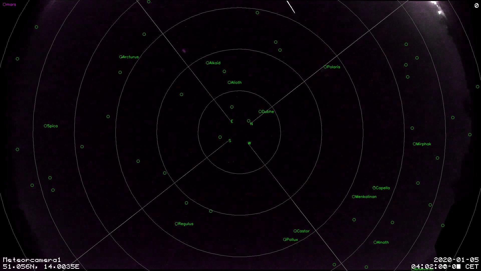 durch den Hinweis eines Beobachters in Dresden am Schillerplatz heute morgen über eine sehr helle von N nach NO ziehende Feuerkugel wurde unsere AllSky-Cam gecheckt: