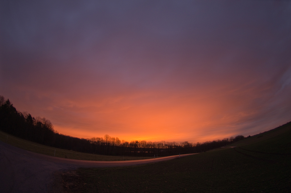 Visuell ist mir der Rotstich aber gar nicht so stark aufgefallen, im Gegensatz zu Sonnenuntergangs-Regenbögen. Muss wohl an den fehlenden Vergleichsmöglichkeiten liegen, bzw. daran, dass es sich aus dem Dunkeln entwickelt hat.