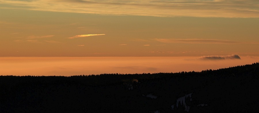 Ein paar echte Luftspiegelungen gab es auch noch, aber es haben nur wenige Berge aus der Inversion herausgekuckt. Hier die beste am Bayrischen Wald.