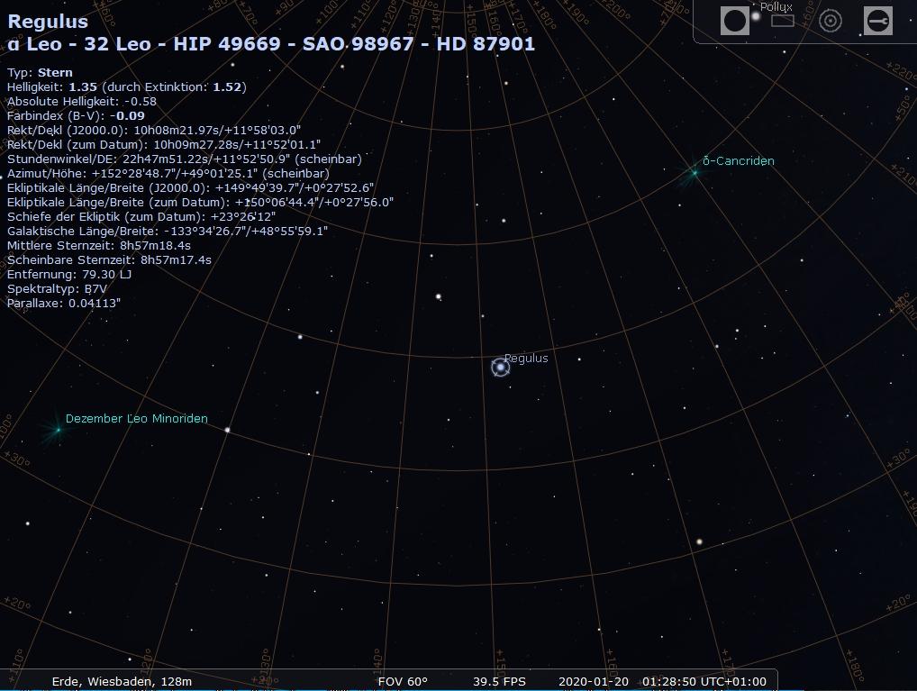 Wiesbaden: Elevation 50° nach 42°, Azimut 171° zu 178°