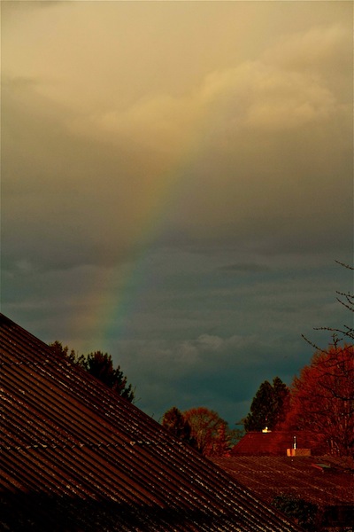 Ein Bild von einem Regenbogen mit Übergang zum Wolkenbogen habe ich am 15. Dezember 2019 bei uns in Schlägl gemacht:
