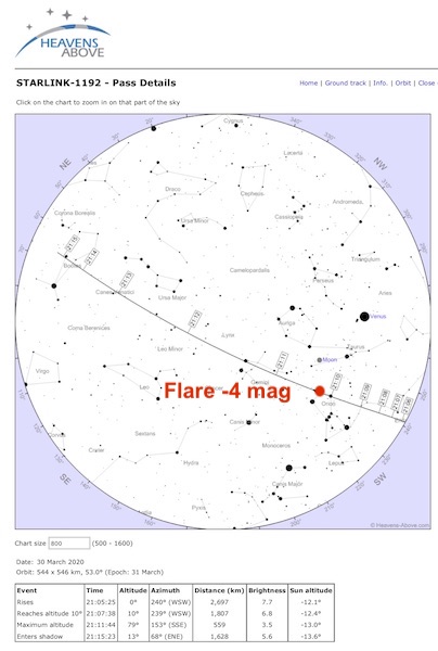 SL-1192 (21:03) Flare -7 mag (fast wie die hellsten-Iridium-Flares!)