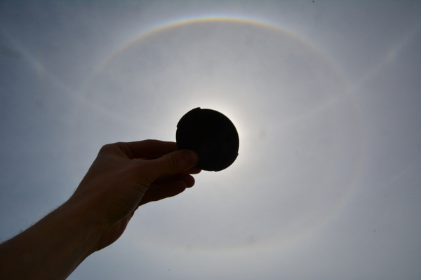 Anders als mit der Kamera festgehalten, waren die Halos alle noch ein Stück heller. Zeitpunkt der Aufnahme 09.17 Uhr:
