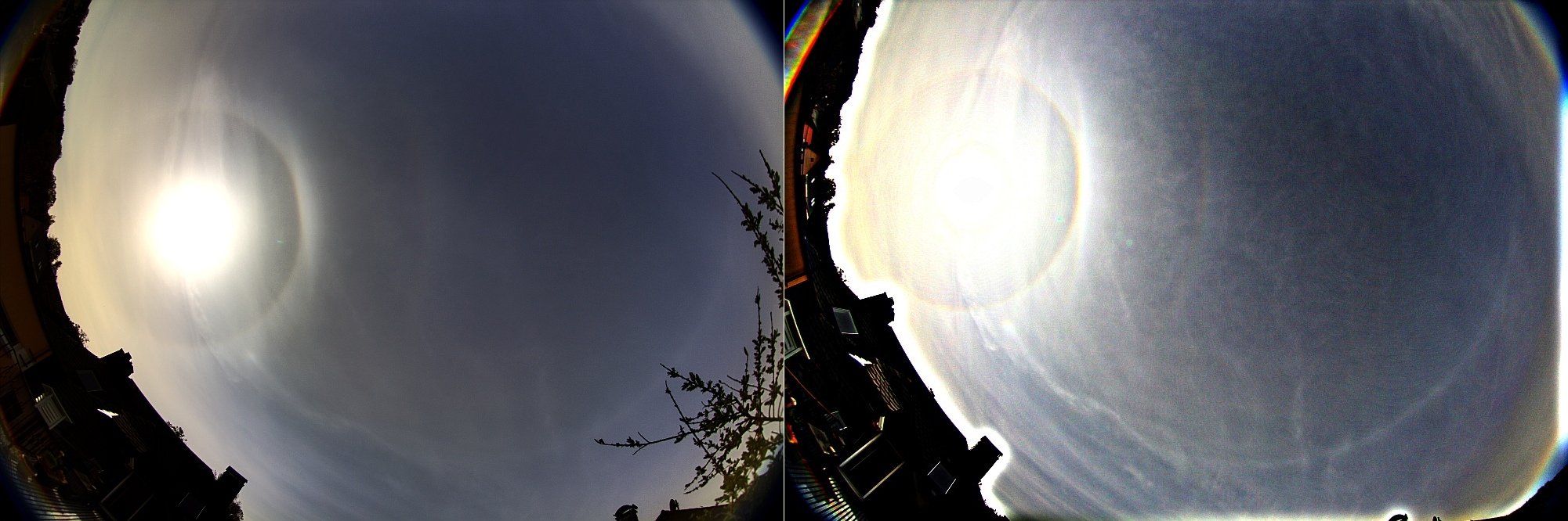 Beobachtungsbeginn war 12:17 MESZ. Zu sehen waren zu dem Zeitpunkt der vollständiger 22° Halo sowie eine vollständige Umschreibung und ein vollständiger Horizontalkreis. Um 12:30 MESZ sah das ganze mit einem Fisheye so aus: