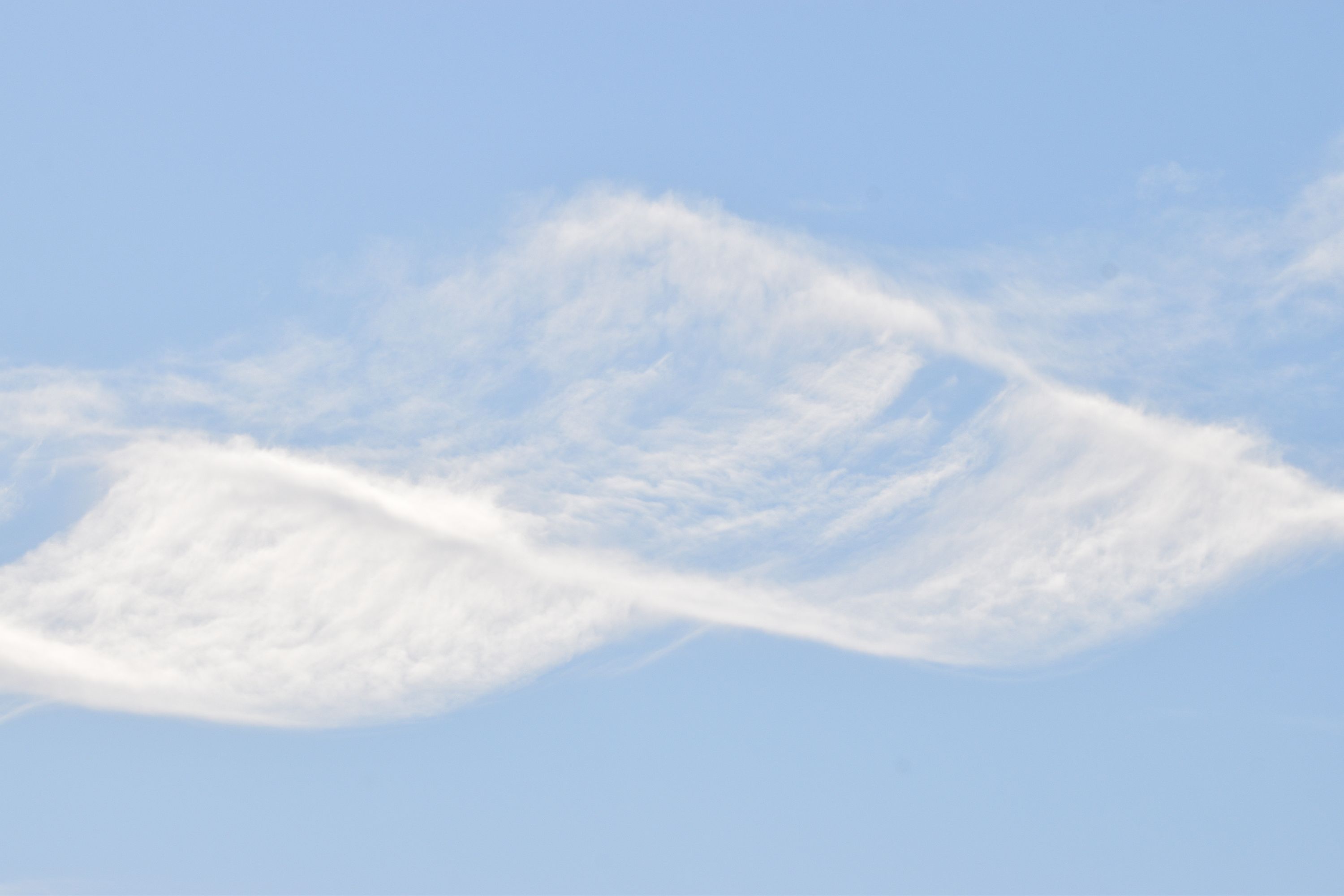es handelt sich um einen Streifen Stratocumulus stratiformis. Die Wellenform hat er wahrscheinlich eine Kelvin-Helmholtz-Instabilität zu verdanken.