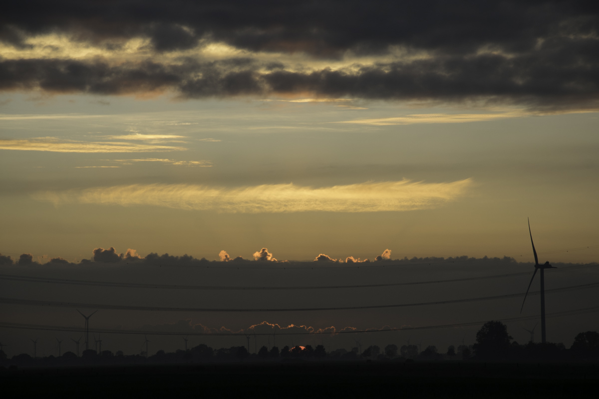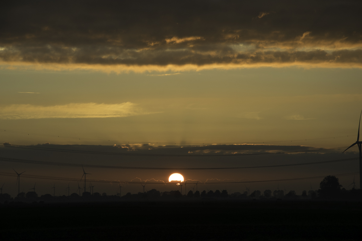 Hier noch einige Bilder vom Sonnenuntergang: Der letzte Blick gefiel mir besonders. Die Oberkanten de Wolken leuchteten noch einmal feuerrot auf.