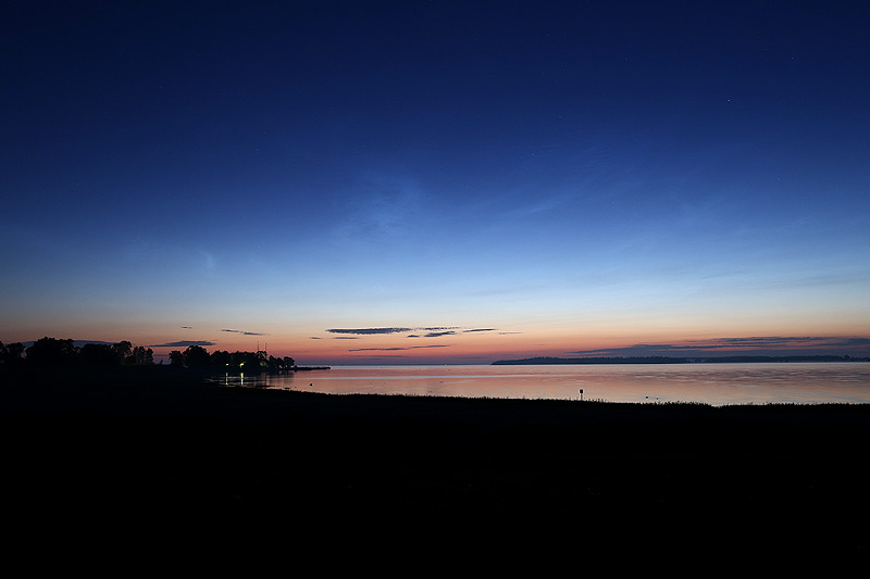 Ich war heute Nacht zwischen 1:20 und 3:30 trotz akuten "Magen Darm Problemen" in Greifswald Wiek unterwegs, um auf Wolkenlücken zu hoffen und Fotos von den NLC zu machen, die ich nach Hinweisen im Forum zuvor auf Webcams sehen konnte. Eigentlich war ich auch gerade erst heim gekehrt, von einer in Sachen NLC fruchtlosen ersten Runde an den Ryck, zu dem ich auch zuerst zurück kehrte und außer normaler Wolken nicht viel sehen konnte. Aber den Satellitenbildern vom Kachelmann zufolge sollten sich die Wolken wieder auflösen und daher fuhr ich dem klaren Himmel entgegen in Richtung Wieck.