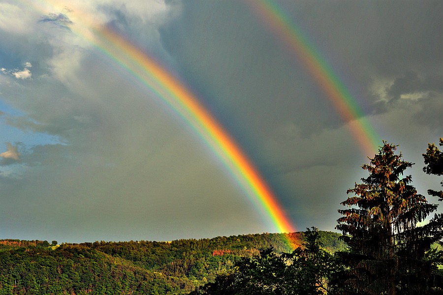 schöne Regenbögen hattet Ihr da, gespalten und normal. Ich hatte leider in den letzen Tagen weniger Glück, aber zumindest die Schauer vor einer Woche hab ich in Weixdorf als Autofahrer miterlebt, da ging schon was ab, fehlte bloß die Sonne. Daheim in Südbrandenburg bis auf ein paar Tropfen alles trocken.