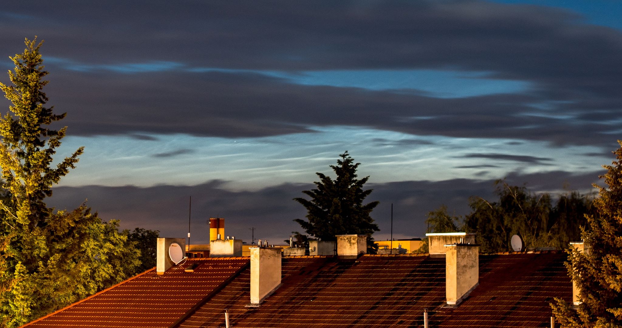 Leider kein Pretty Picture sondern nur ein Belegbild der Leuchtenden Nachtwolken gegen 3h MESZ während einer Wolkenlücke aus meinem Badezimmerfenster raus. Leider habe ich von meiner Lübbener Wohnung keine bessere Sicht Richtung Norden und Osten, so dass ich nur einen Ausschnitt des NLC Displays zeigen kann.