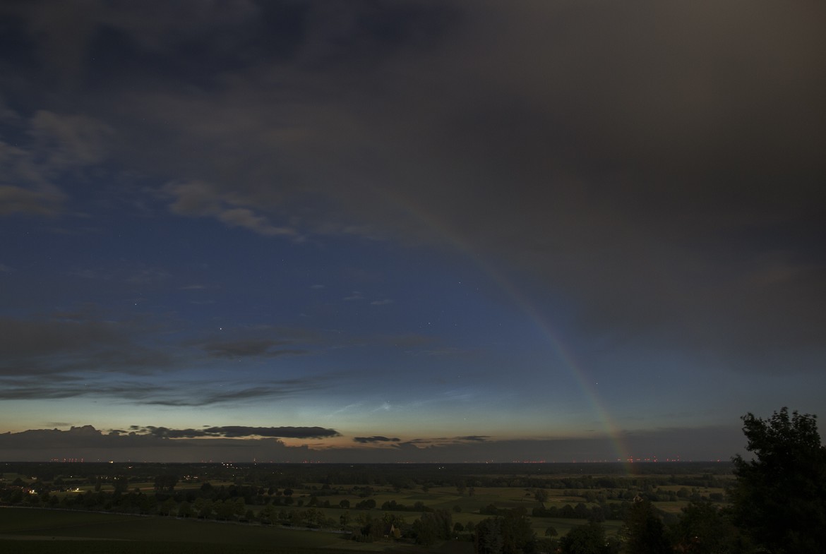 Bemerkenswert ist aus dieser Nacht ferner das - möglicherweise bislang einmalige - Foto von Jørgen aus Lübbecke, welches NLCs mit einem Mondregenbogen zeigt.
