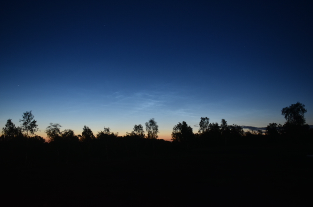 Nordosten: NLC-Bänder über den Baumwipfeln in ganz grob geschätzt 20° Höhe , Helligkeit 3