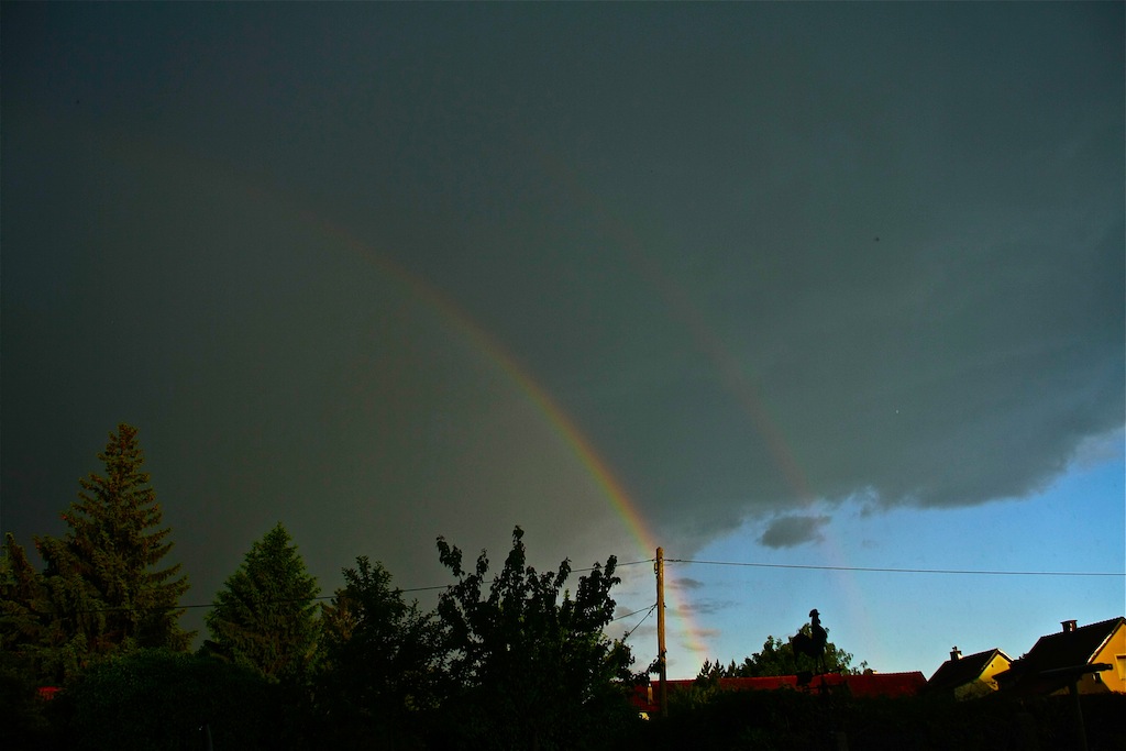 gestern , am 30.5. zeigte sich am späten Nachmittag noch ein doppelter Regenbogen über dem Wiener Becken. Nicht so einfach da in strömenden Regen im Freien eine gute Aufnahmeposition zu finden.