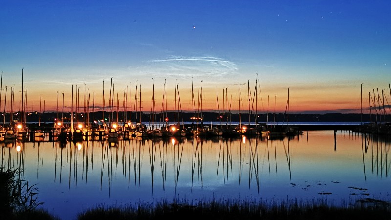 was auf Grund der Höhenangaben von der Ostsee-Küste (bis zu 10°) zu vermuten war, hat sich mittels der Webcams bestätigt: die NLCs der letzten Nacht waren auch deutlich weiter südlich noch sichtbar, so das Wetter mitspielte. Nachstehend die Fundliste von Nord nach Sü.