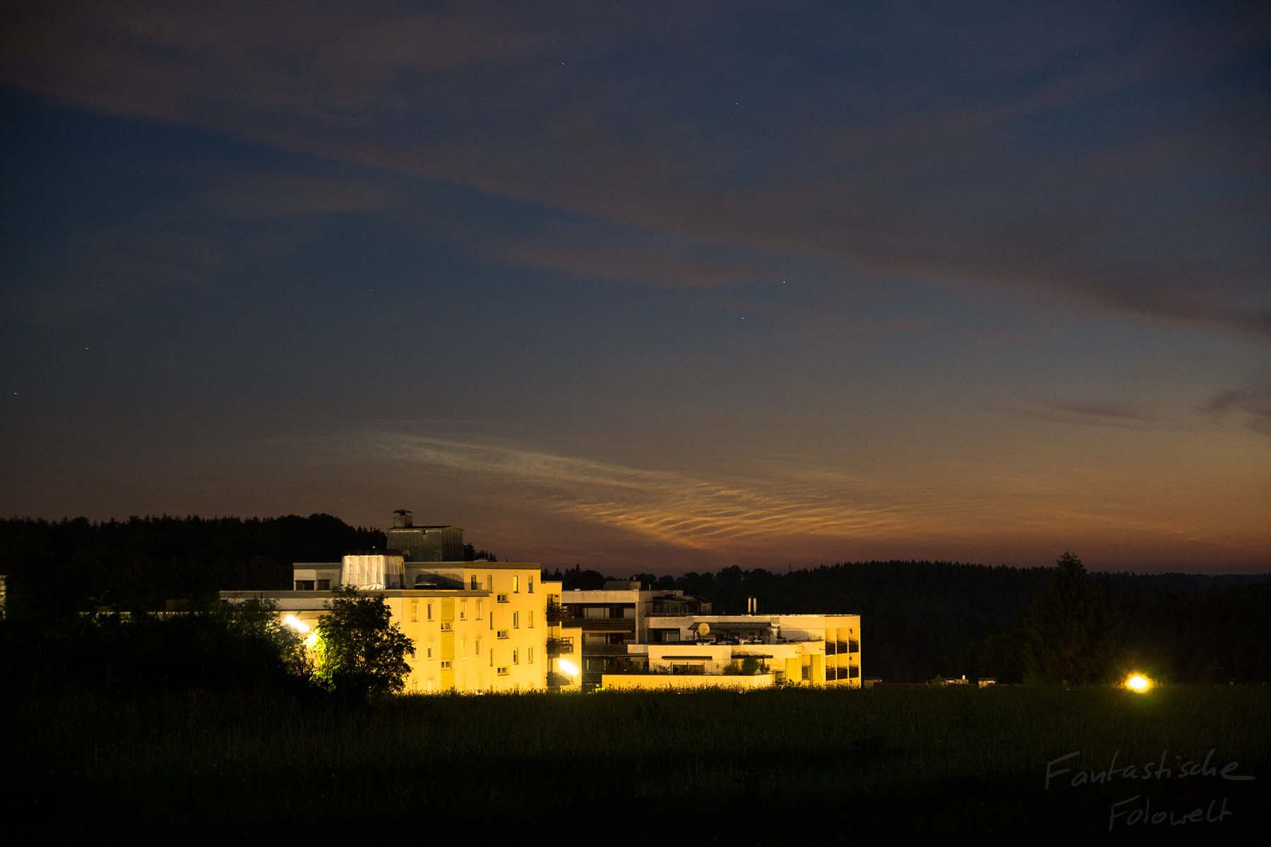 Mit zunehmender Dämmerung nahm die Helligkeit schließlich immer weiter ab. Um 23:13 MESZ waren noch schöne filigrane Strukturen am Horizont erkennbar.