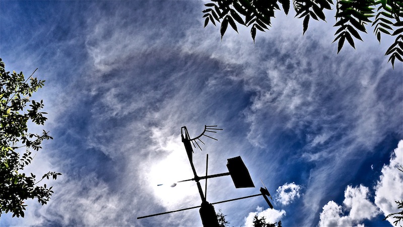 Das Foto hinter der Wetterfahne war dann schon nach 16h und langsam am Verblassen.