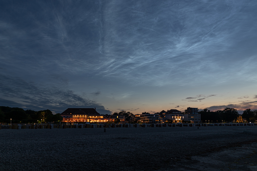 Gegen 23:30 UTC bin ich noch 'mal direkt zum Ostseestrand (Hubertsberg) gefahren. Auch dort wieder beeindruckende Strukturen über dem Horizont, allerdings erreichten die NLC's bei weitem nicht mehr die Höhe....