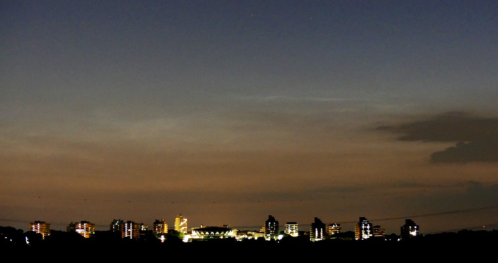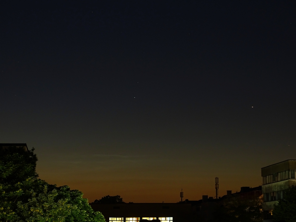 So bin ich zu Fuß in die Stadt. Gegen grob 23:00 tauchte tief am Horizont ein NLCchen im Dunst auf. Ich habe es zu Dokumentationszwecken abgelichtet und dann eingepackt.